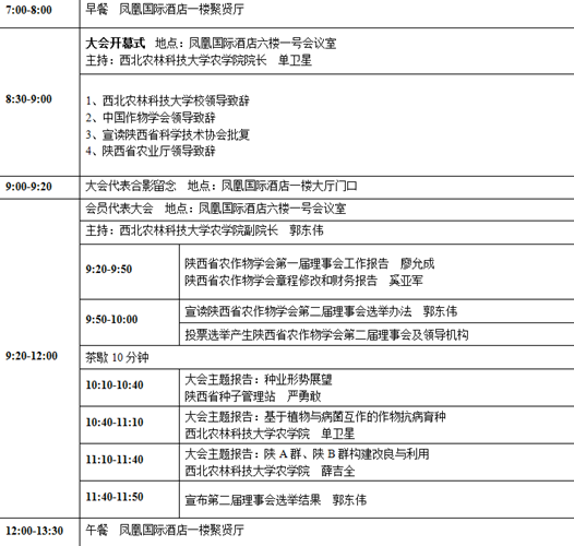 陕西省农作物学会第二届会员代表大会暨2019年学术年会会议指南