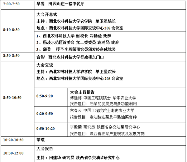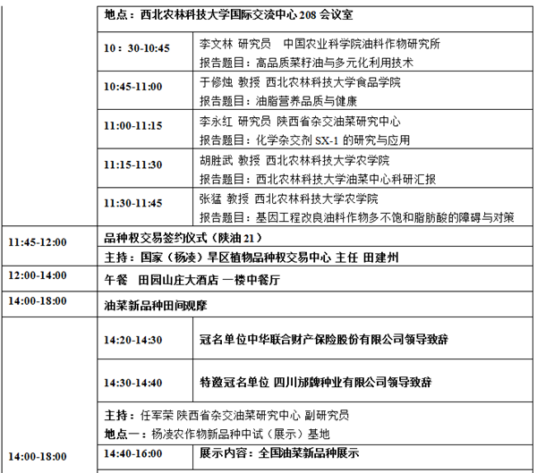 学术活动 您现在的位置: 云博官方网站,云博yunbo(中国) - 学术活动 2019年首届全国(杨凌)油菜科技大会暨全国冬油菜新品种观摩展示交易会 日程安排 上传时间: 2019-05-18 浏览次数: 2019年5月19日 星期日 2019年5月20日 星期一 编辑:0 终审:0 下一篇:关于举办加拿大UBC大学张跃林与李昕教授报告会的通知 分享到: